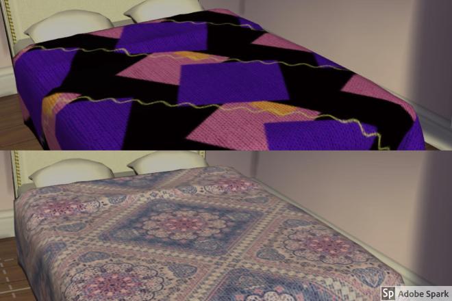 I wanted blankets for teenage girls and young adults that were girly and also not too girly. I recolored and added a wool texture to Santorini – bed blanket by Severinka to make really vibrant and bright blankets.