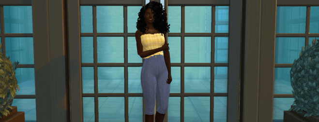 Today Carmen felt a little sunny. In high waisted capris and a frilly tube top, with strappy wedges. Shine Carmen, Shine!