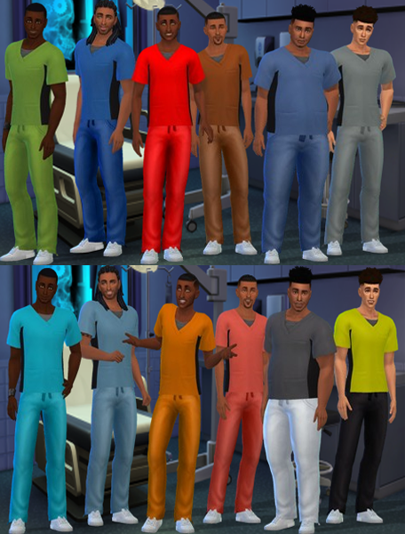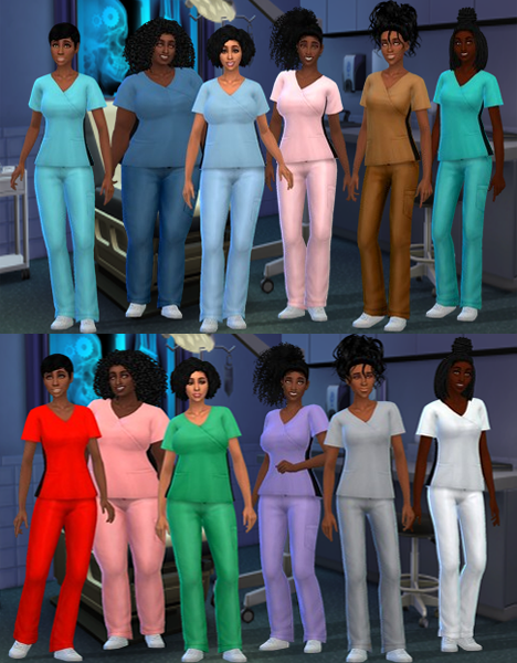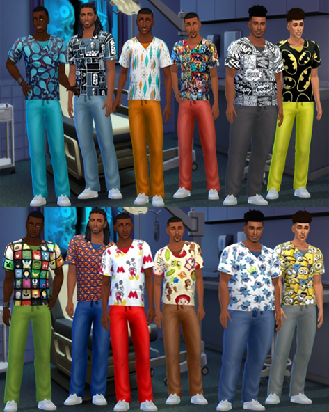 A follow @imanibattle25 requested some Nurse scrubs recolors and I decided to try, I really haven’t played the medical career. But, I knew i wanted fun patterns. In this set there are 12 top patterns for female and male and 13 female bottom recolors and 14 male bottom recolors.